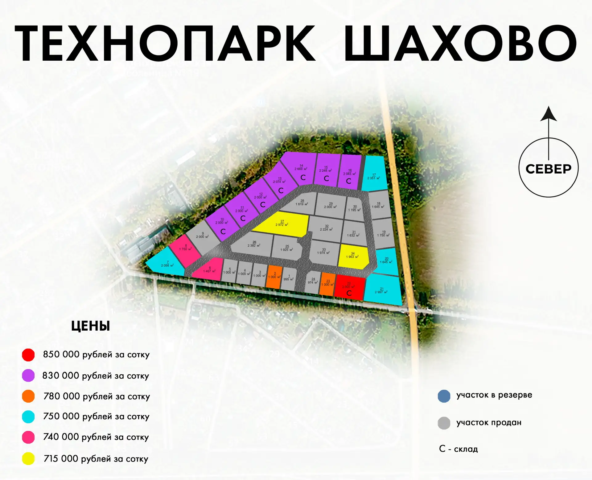 Проданные участки выделены серым цветом. Участки которые находятся в продаже, выделены различными цветами. Цену участка смотрим по цветной шкале которая указана под генпланом. Цена указана за сотку. * -условия акции уточняйте по телефону, акция действительна только для клиентов, обратившихся в компанию впервые. АКТИВНАЯ СХЕМА при нажатии на участок высвечивается актуальная информация по участку.